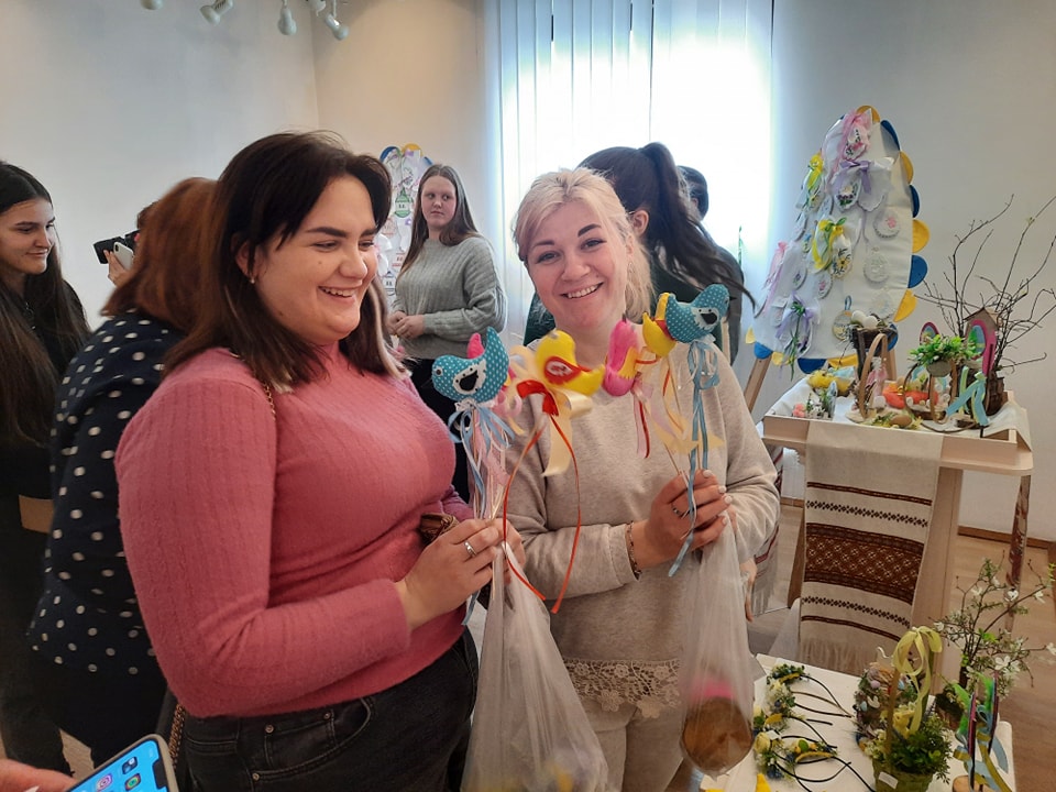 На завершення офіційного відкриття виставки педагоги техколеджу провели для відвідувачів майстер-клас із оздоблення великодніх кошиків.