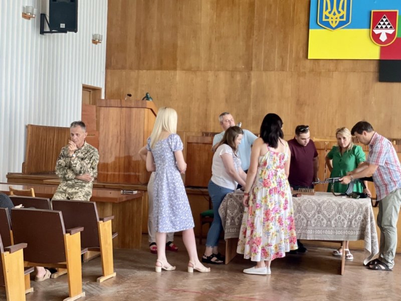 Працівникам виконавчого комітету розповідали про поводження зі зброєю та будову автомату. Нагадали правила поведінки при надзвичайній ситуації. Всі охочі під наглядом інструктора мали змогу спробувати збирати та розбирати автомат.