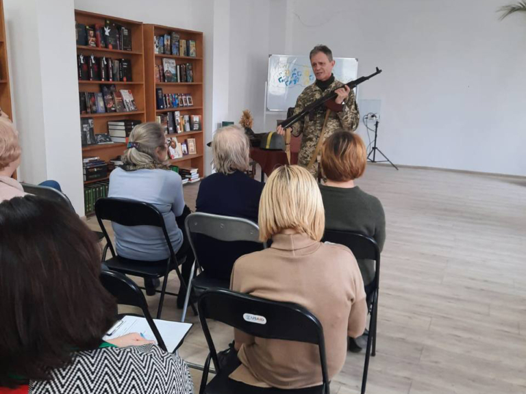 27 лютого в приміщенні Нововолинської центральної бібліотеки відбулося навчання з основ національного спротиву. Його провів інструктор Віктор Поліщук. Декілька десятків мешканців охоче взяли участь і отримали базові військові навички.