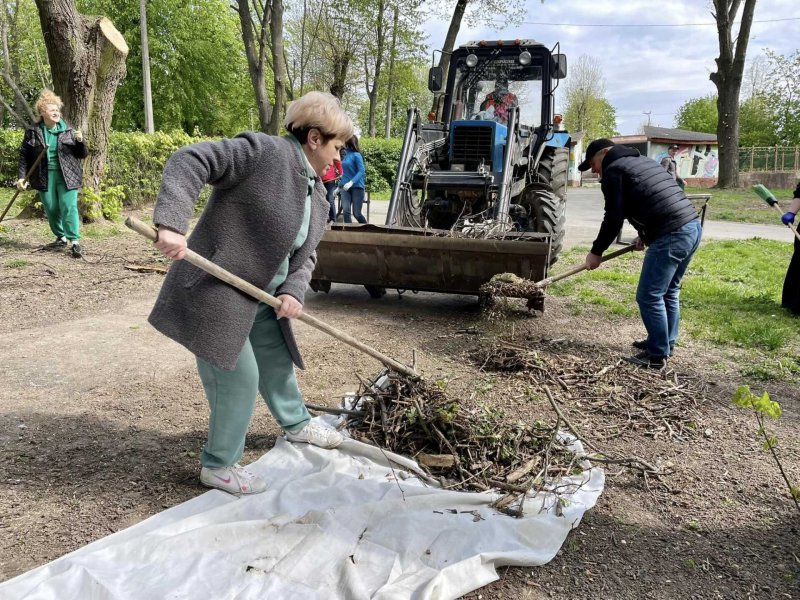 Інна Вихор, Богдан Бадзюнь, Валерій Мних, Інна Іщук, Марина Єлева, Юлія Буденчук, Сергій Трофимчук та Галина Панафідіна прибрали територію від сміття та зрізаного гілля.