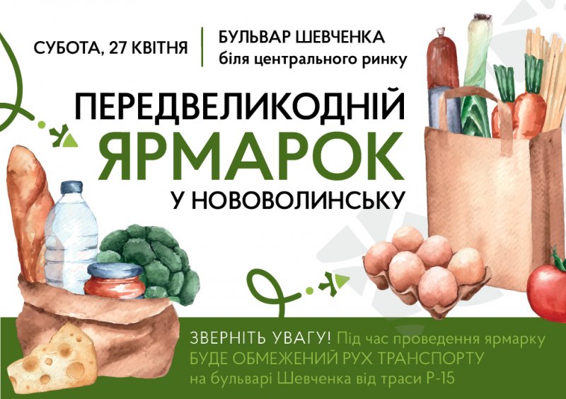 У суботу, 27 квітня, з 8:00 до 15:00 біля Нововолинського центрального ринку продаватимуть усе необхідне до великоднього столу:  молочні та м’ясні товари, овочі й фрукти, яйця, бакалію, мед, напої, іншу сільськогосподарську продукцію, сувеніри. А також декоративні та садові рослини й квіти.