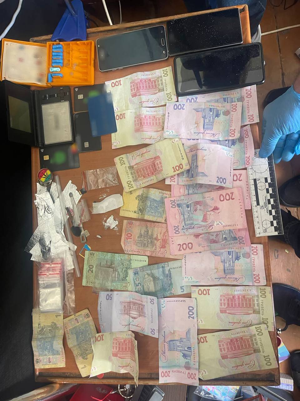 Під час обшуку за місцем проживання фігурантів поліцейські виявили та вилучили психотропи Альфа “PVP”, грошові кошти, електронні ваги, банківські картки та мобільні телефони.