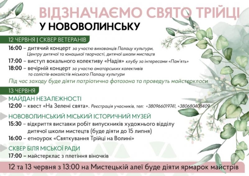 та гостей міста запрошують на відзначення свята Трійці у Нововолинську.