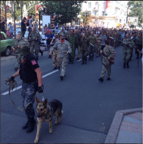 На фото з «Української правди»: проросійські терористи конвоюють наших солдатів вулицями «столиці Донбасу»…