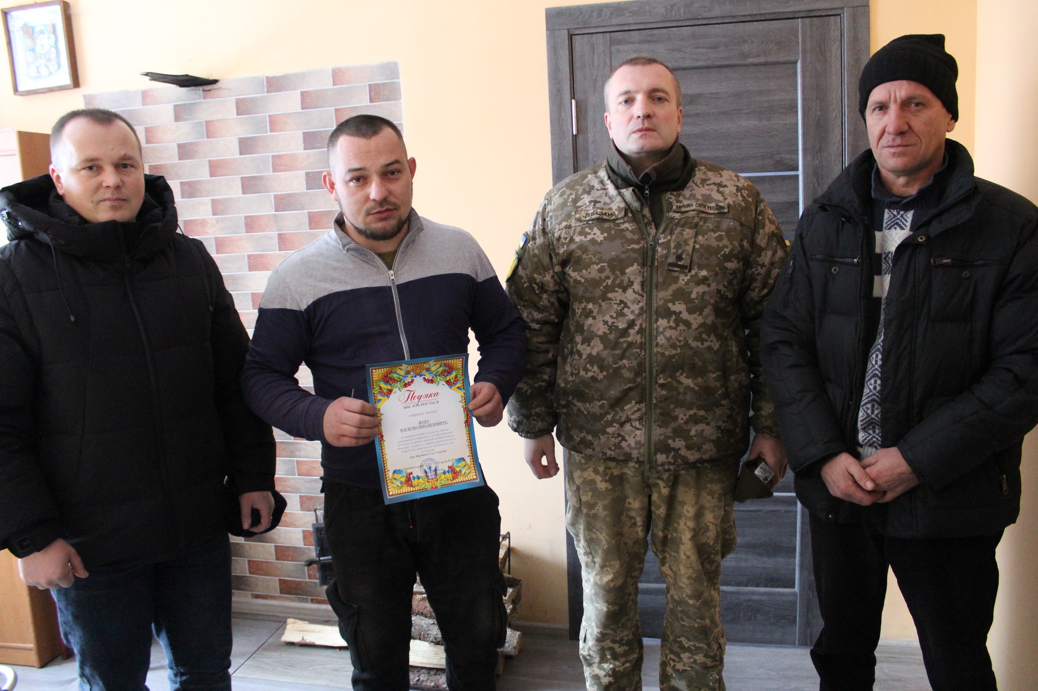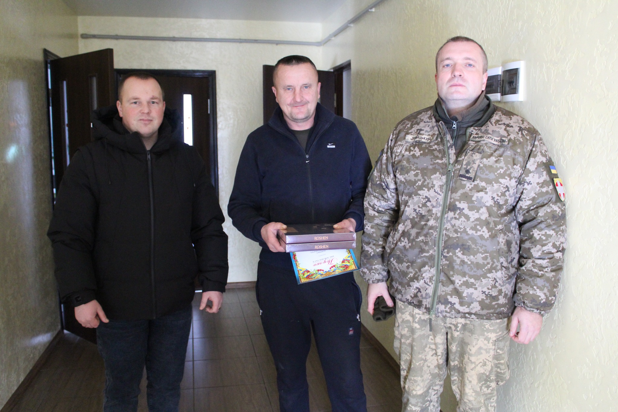 Мужніх воїнів привітали з Днем ЗСУ, оголосили подяки за визначні особисті заслуги у захисті державного суверенітету та територіальної цілісності України та вручили їм (або їхнім рідним) подарункові сертифікати.