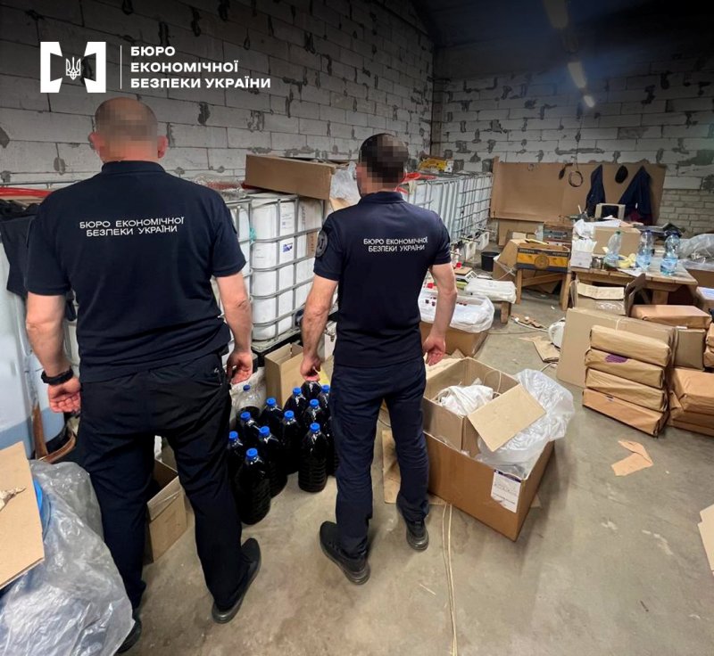 Детективи БЕБ провели обшуки на території незаконного виробництва та вилучили фасовану продукцію об’ємом понад 15 тис. літрів, 5,5 тонн спирту та 1 тонну готової рідини для розливу тощо.