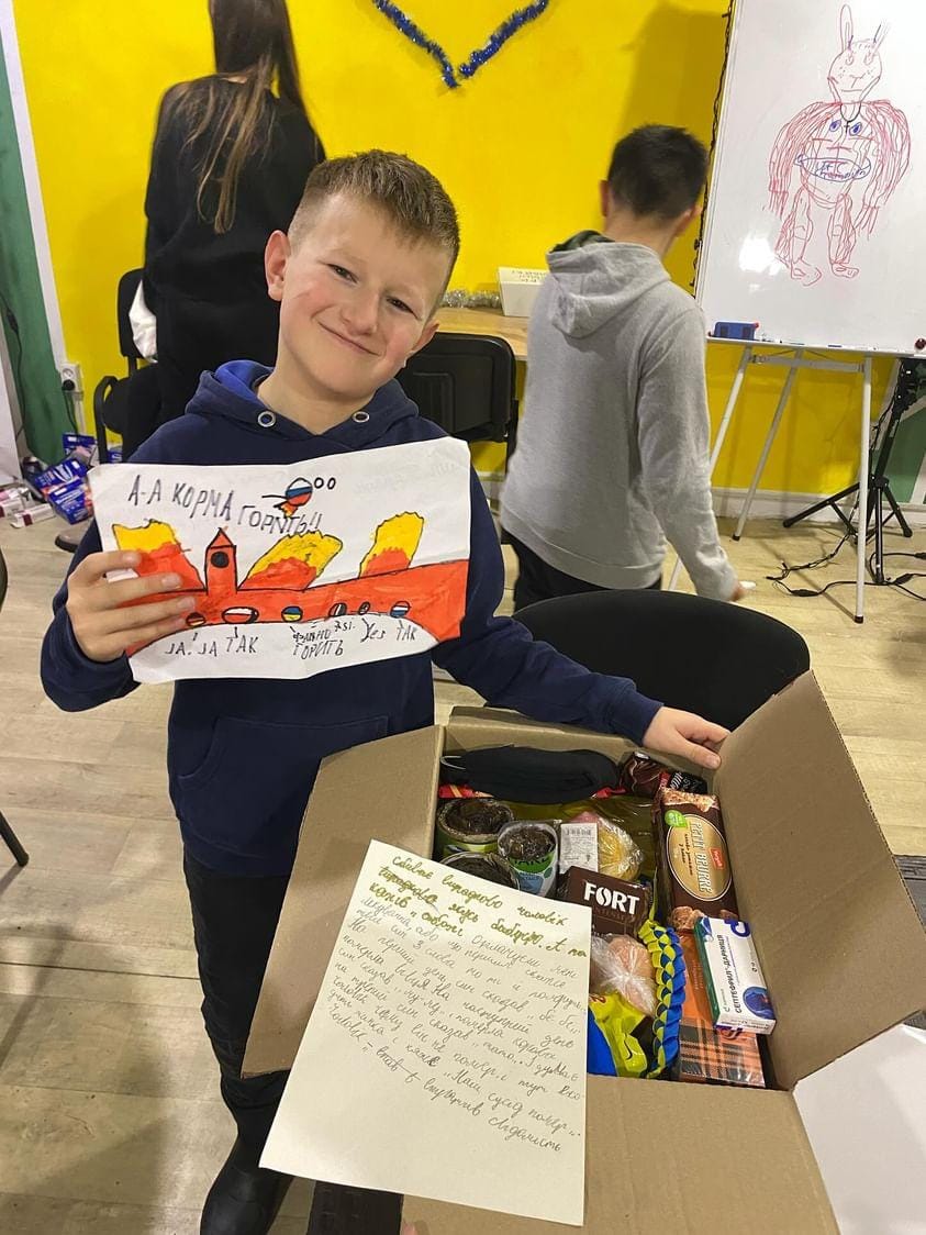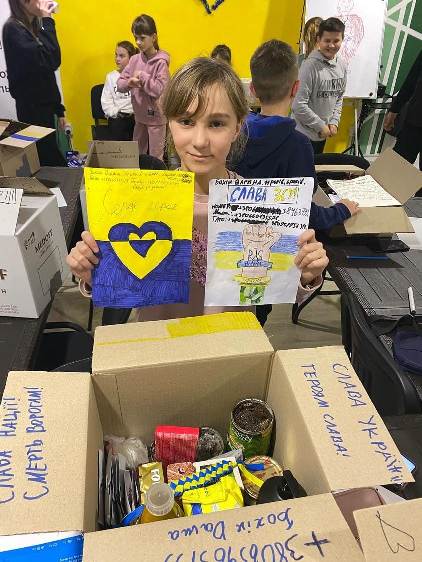А ще у дітей виникла ідея залишити в листах або ж на коробках свої номери телефонів, аби воїни відразу ж при можливості зателефонували до них і діти могли особисто сказати: “Дякую!!! Слава Україні!”