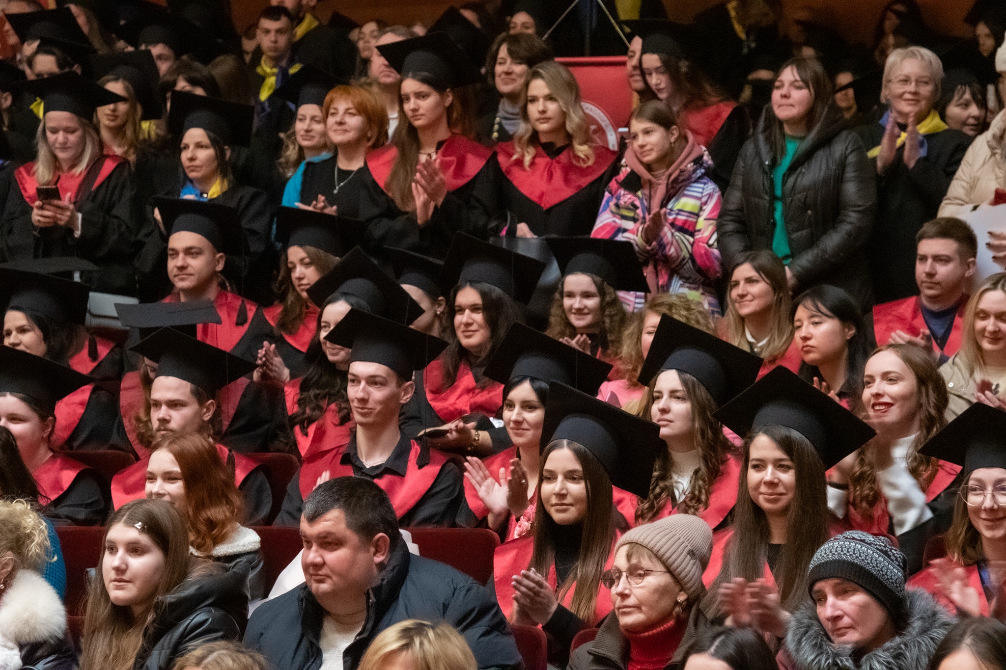 «Бажаю кожному з вас знайти себе і втілити свої задуми та мрії. Вірю, що невдовзі наша спільна мрія здійсниться, і сигнали повітряної тривоги перестануть звучати, а Україна здобуде справедливий мир. Нам з вами відбудовувати нашу державу, ви потрібні і в системі органів управління, і в економіці, і в юридичній та міжнародній сферах. Ваші знання, запал та ідеї необхідні в кожній зі складових життєдіяльності нашої держави», – звернувся до випускників Григорій Недопад.