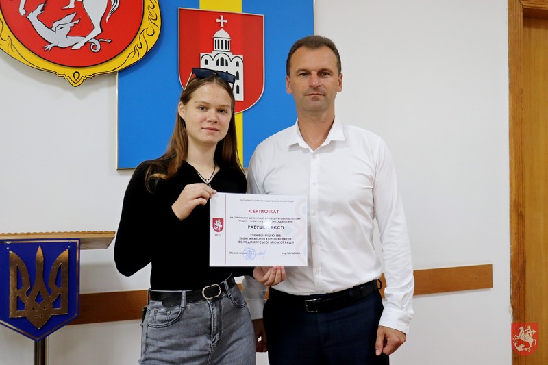 19 вересня мер міста Володимира Ігор Пальонка вручив сертифікати на отримання стипендії міського голови кращим учням і студентам закладів освіти, що функціонують на території Володимир-Волинської територіальної громади.