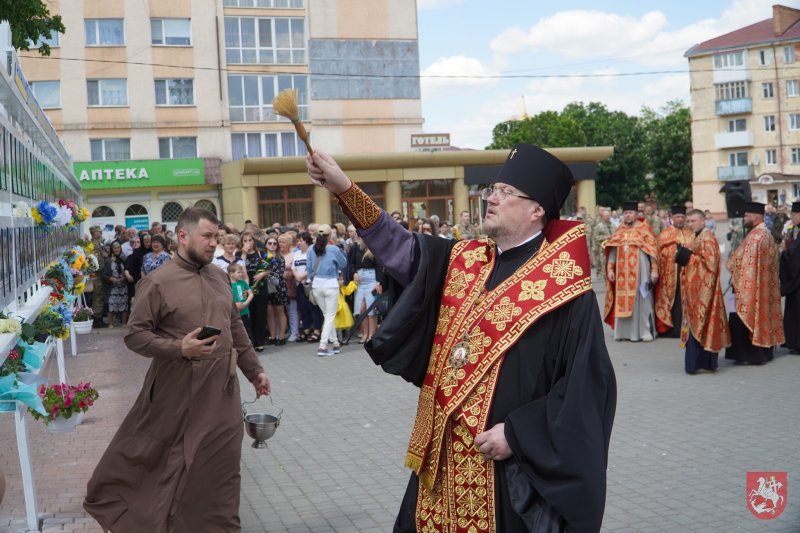 Священнослужителі ПЦУ на чолі з архієпископом Володимирським і Нововолинським Матфеєм відслужили панахиду за спочилими воїнами та здійснили обряд освяченні оновленої дошки. До панахиди долучився і настоятель римо-католицького костелу Іоакима та Анни отець Лєшек.