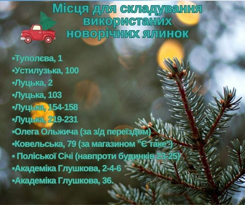 Отож, володимирчани можуть складати ялинки біля контейнерних майданчиків для сміття, які знаходяться за такими адресами: