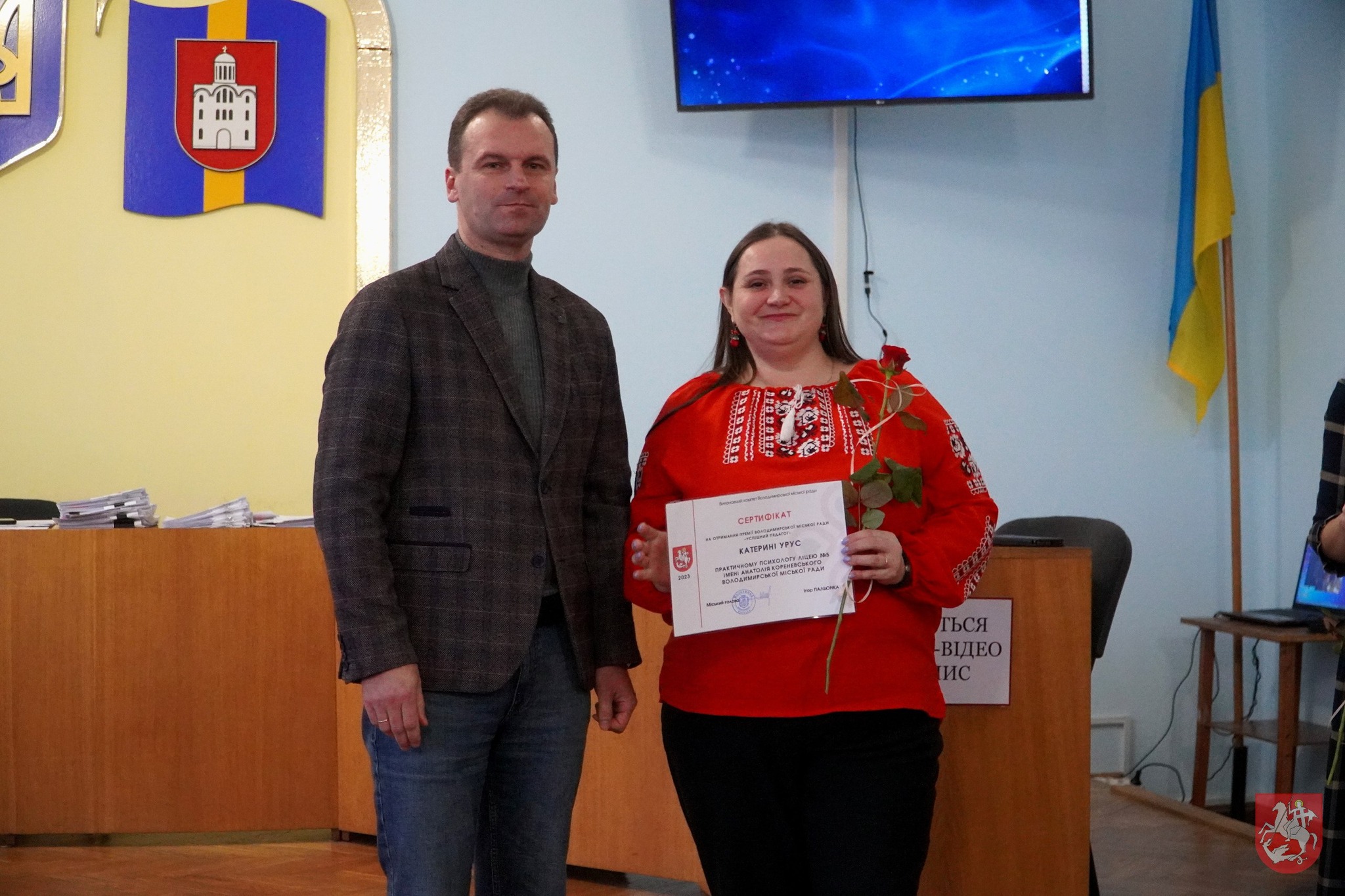Також за вагомі досягнення у галузі освіти, пошук ефективних методів виховання та навчання підростаючого покоління сертифікати на отримання премії Володимирської міської ради «Успішний педагог» вручено: