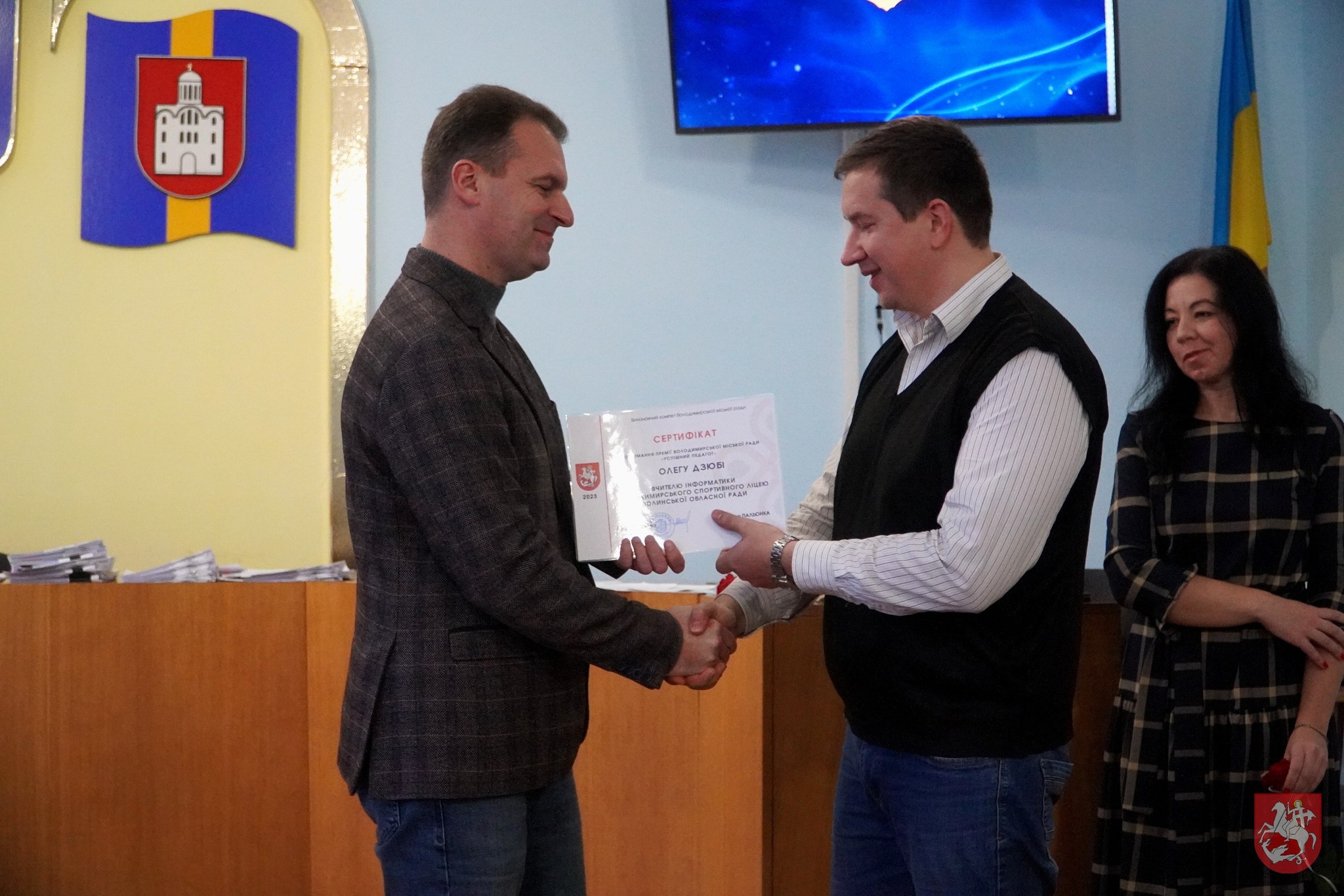 – Олегу Дзюбі, вчителю інформатики Володимирського спортивного ліцею Волинської облради,