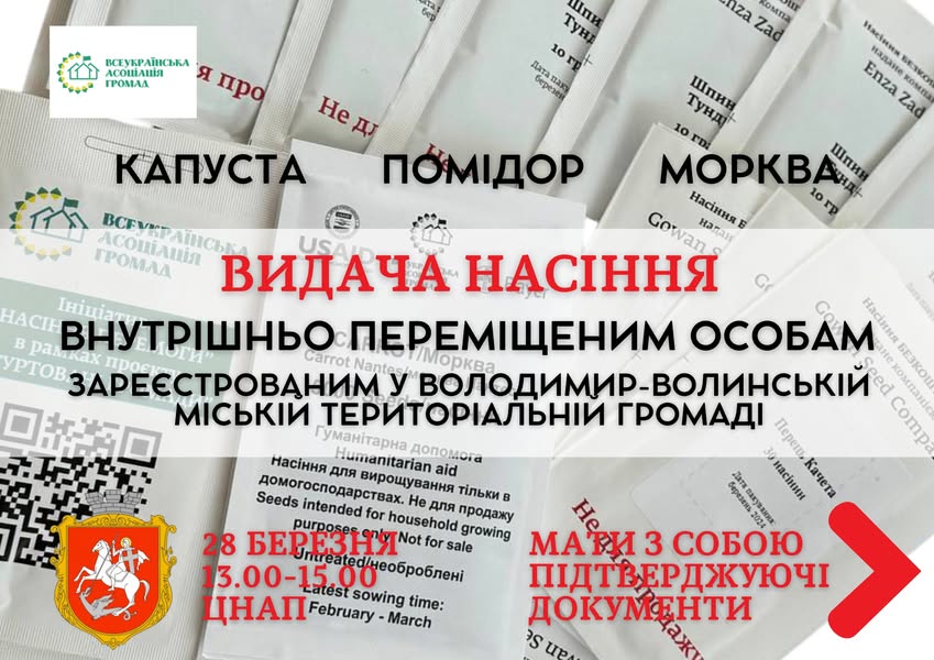 В рамках ініціативи «Насіння Перемоги» проєкту «Програма підтримки продовольчої безпеки «Згуртовані громади» від Всеукраїнської асоціації громад наша громада отримала насіння овочевих культур (морква, капуста, томати) для підтримки понад 100 домогосподарств.