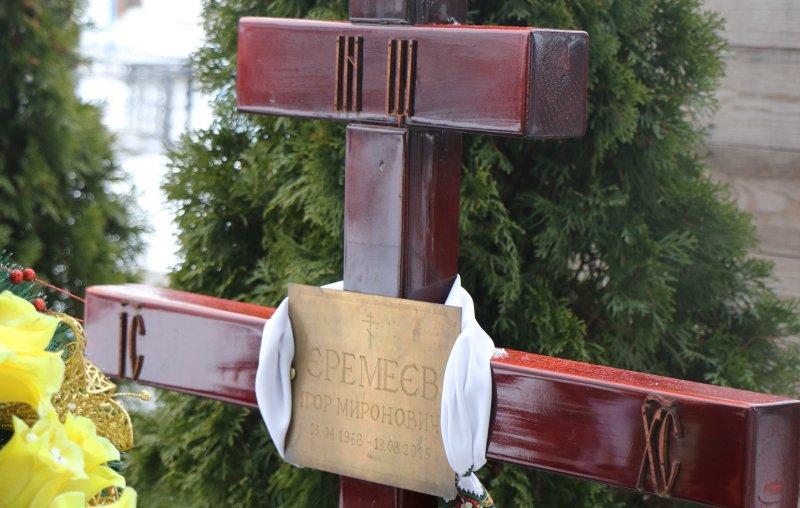 хрест на могилі Ігоря Єремеєва в с. Острожець Млинівського р-ну Рівненської обл.