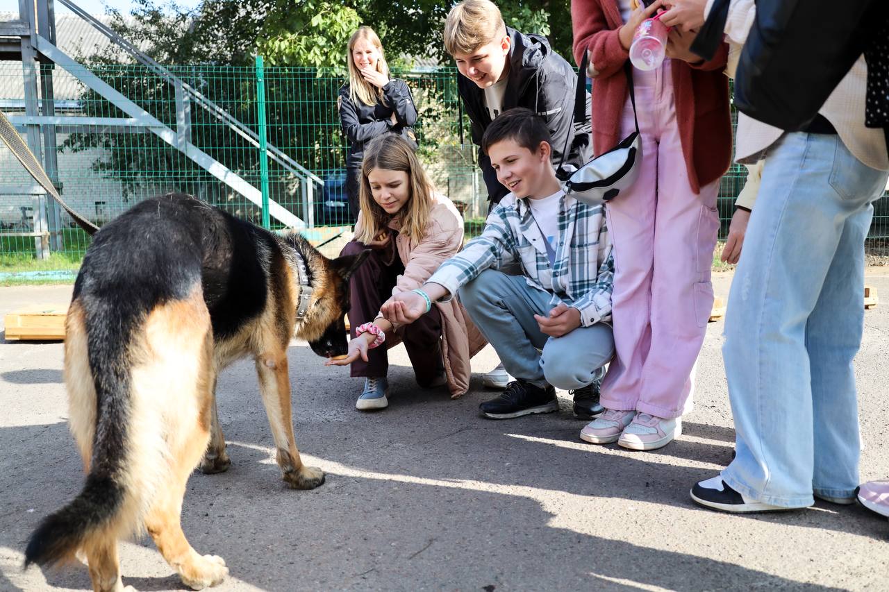 Працівники центру показали юним гостям, як проходять тренування службових собак та розповіли про особливості своєї роботи. Вони зауважили, що щодня хвостатих залучають до розшуку зниклих, розкриття злочинів, виявлення наркотиків або ж вибухівки, тому їхня служба є надважливою й може вберегти багатьох.