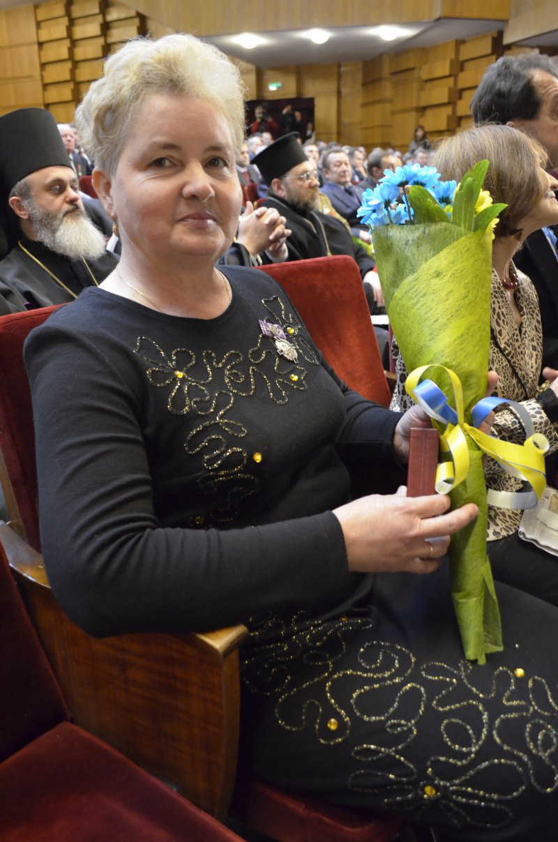 На фото Оксани БУБЕНЩИКОВОЇ: Катерина Бондар, нагороджена орденом княгині Ольги III ступеня, в облмуздрамтеатрі на урочистих зборах, присвячених 75-річчю створення Волинської області.