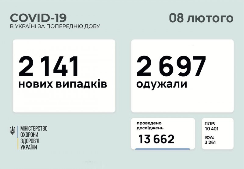 лютого в Україні зафіксовано 2 141 нових випадків коронавірусної хвороби