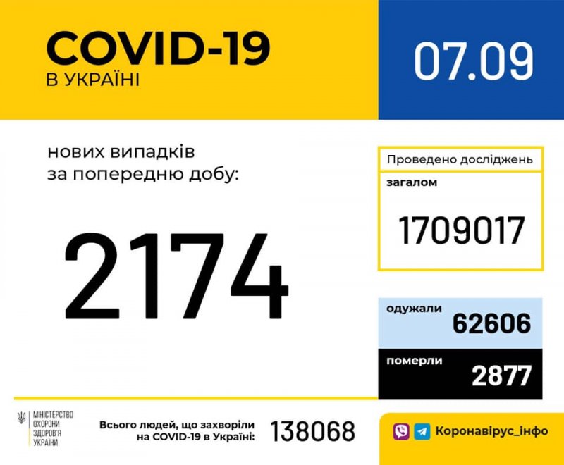 вересня (станом на 9:00) в Україні 138 068 лабораторно підтверджених випадків