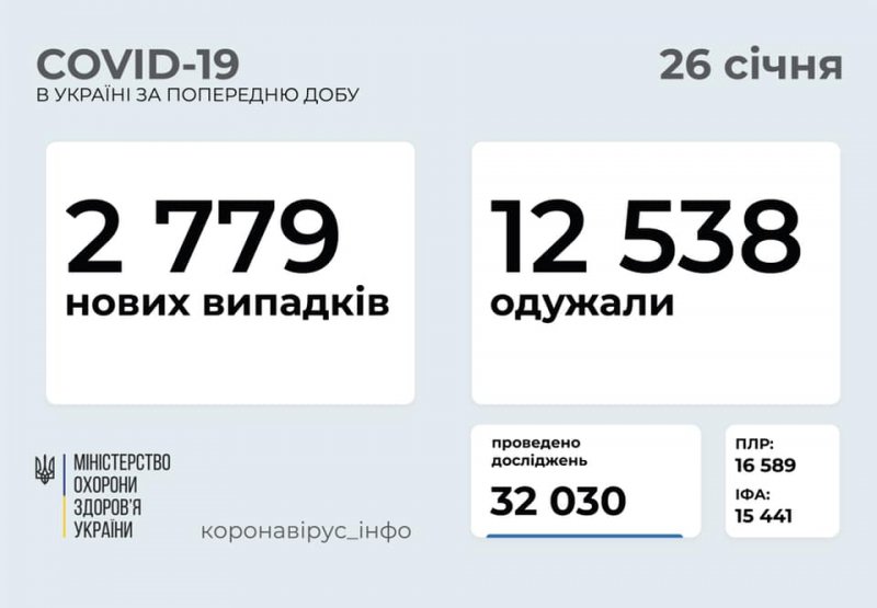 2 779 нових випадків коронавірусної хвороби COVID-19. Зокрема, захворіли 95 дітей та 175 медпрацівників.