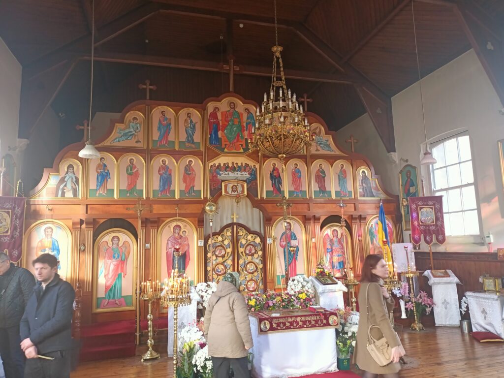 Священник після освячення пасочок виступив із короткою проповіддю. Закликав не тільки молитися за Україну, але й допомагати з-за кордону всім, чим тільки здатна діаспора.