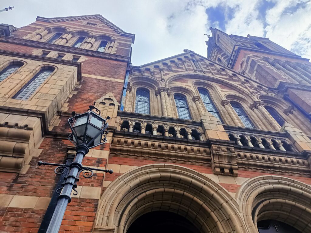 Інший храм, Української Греко-Католицької Церкви, розташований у центральному районі Вестмінстера. Можливо, зручне транспортне сполучення (буквально поряд станція метро), а, ймовірно, святе бажання українців бути разом на богослужінні в перший день Великодня стали причинами того, що доволі великий храм виявився заповнений вірянами так, що навіть яблуку не було де впасти.