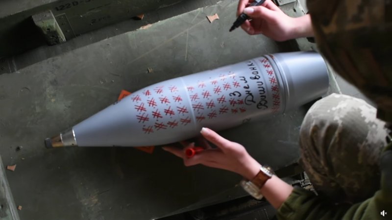 Воїни Десантно-штурмових військ Збройних Сил України в День вишиванки написали на снарядах до гаубиць, якими працюватимуть по окупантах, вітання до Дня вишиванки.