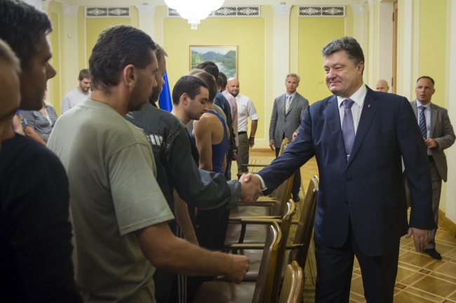 Президент України Петро Порошенко зустрівся з військово-службовцями, яких було звільнено з полону в Донецькій обл.