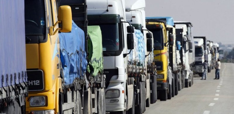 черга вантажівок, які очікують на контроль. Така велика черга – це наслідок