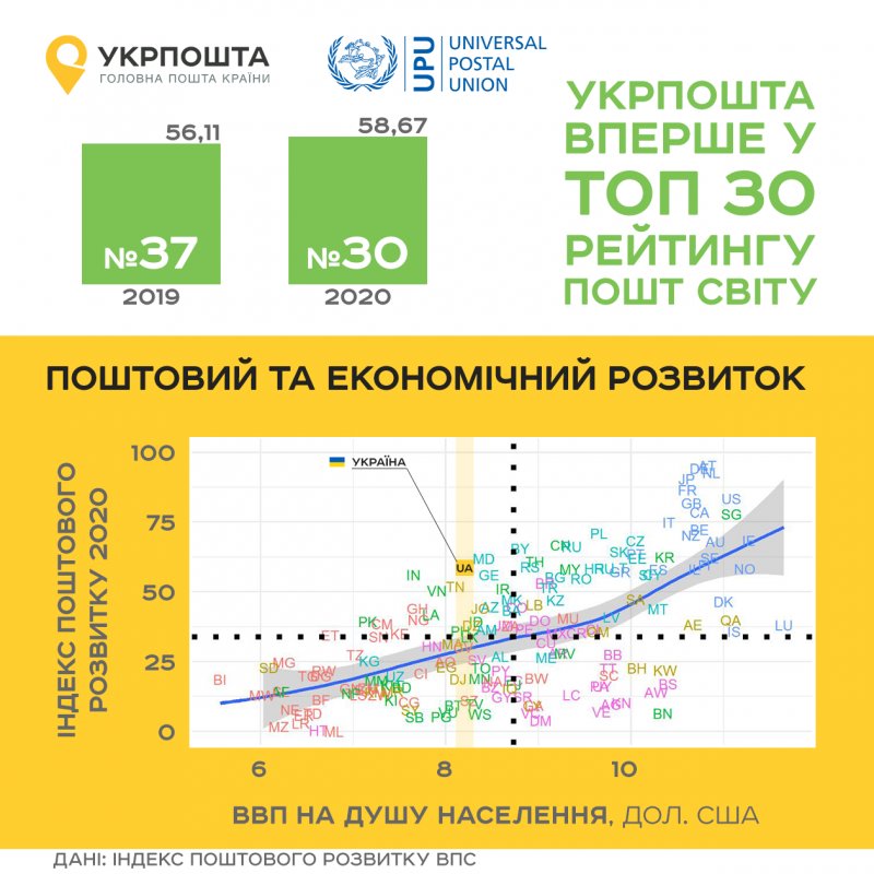 рейтингу 30 найкращих пошт світу – Postal Development Index 2020. Ми тільки
