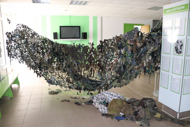 Відтак, прямо в фойє корпусу, де розміщений інститут та університетська бібліотека, об лаштоване місце для виготовлення маскувальної сітки. Кожен бажаючий може долучитися до створення простого, але ефективного в бойових умовах елементу захисту як військової техніки, так і бліндажів для особового складу.