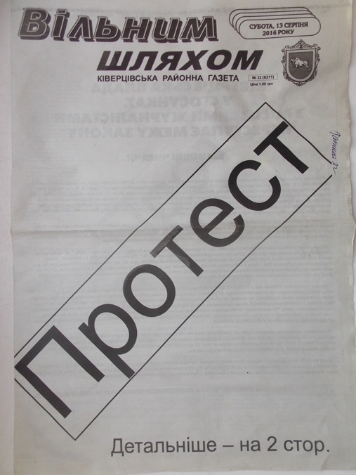 Журналісти розцінили це як «тиск одного зі співзасновників Ківерцівської районної газети «Вільним шляхом» в особі керівництва райради та потурання цим протиправним діям із боку голови райдержадміністрації Євгена Ткачука», публічно повідомивши це громадськість в одному з протестних випусків видання.