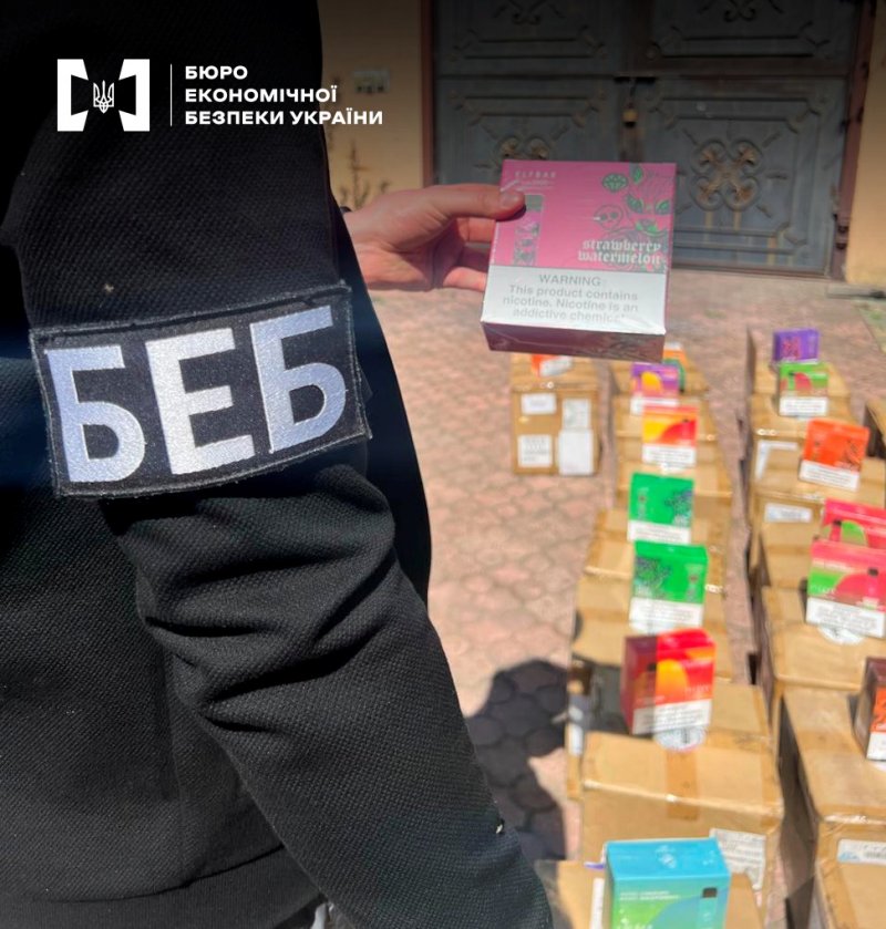 За результатами обшуків житлового та офісного приміщень детективи БЕБ виявили та вилучили майже 8 тис. штук електронних сигарет, рідин до них, пристроїв для електронних випаровувачів, готівку, мобільний телефон та ноутбук.