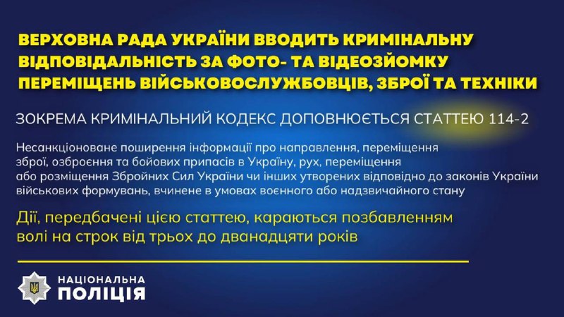 В Україні вводиться кримінальна відповідальність за фото- та відеозйомку переміщень наших військовослужбовців, зброї і техніки