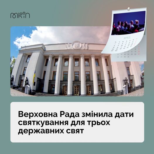 Зокрема, Верховна Рада України змінила дати трьох державних свят: