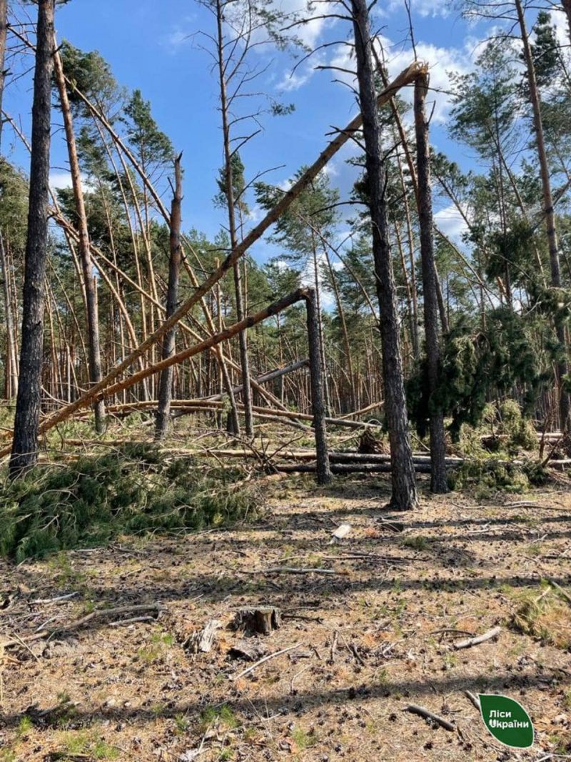 Найбільше постраждали насадження сосни. Подекуди дерева поламані, як сірники. Є і такі, які вітер виривав із корінням.