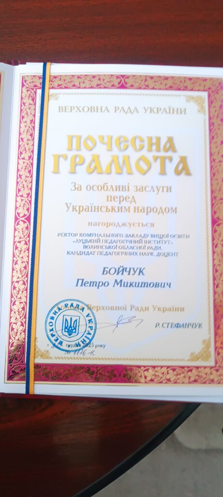 Ректор Луцького педагогічного інституту Петро Бойчук удостоєний Почесної грамоти Верховної Ради України!