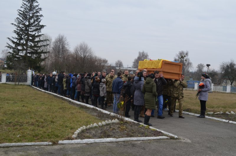 На фото Олени ЛІВІЦЬКОЇ: мить із прощання з Олександром Кінахом з с. Годомичі Маневицького р-ну, який не повернувся з-під Дебальцевого.