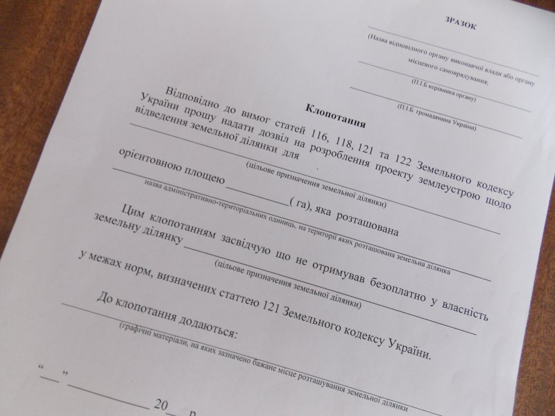 клопотання, з якого починається виділення землі.