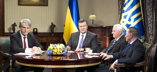 На фото: зустріч Віктора Януковича з Віктором Ющенком, Леонідом Кравчуком і Леонідом Кучмою.