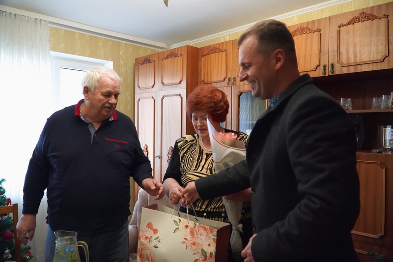 Подружжю Куркуленків 8 січня вручено подарунок і квіти.