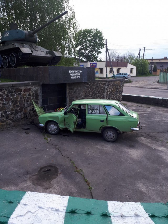 Володимирі-Волинському легковий автомобіль влетів у постамент з танком.