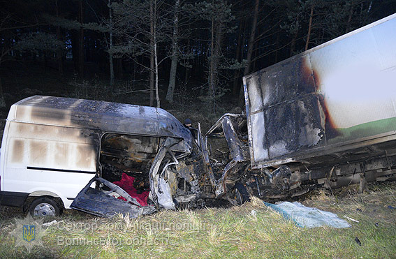 у Волинській області повідомляє, що «Ford Transit» врізався у вантажівку «Тata»,