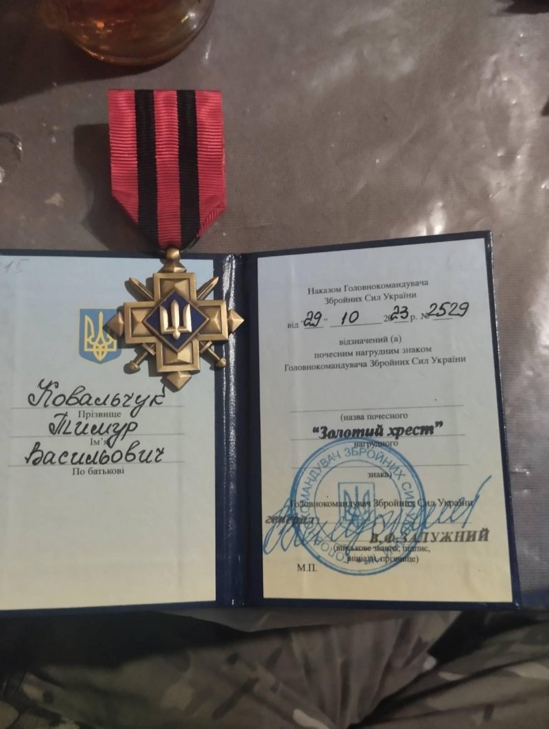Залужний нагородив “Золотим хрестом” Тимура Ковальчука, військовослужбовця із селища Головне Ковельського району.