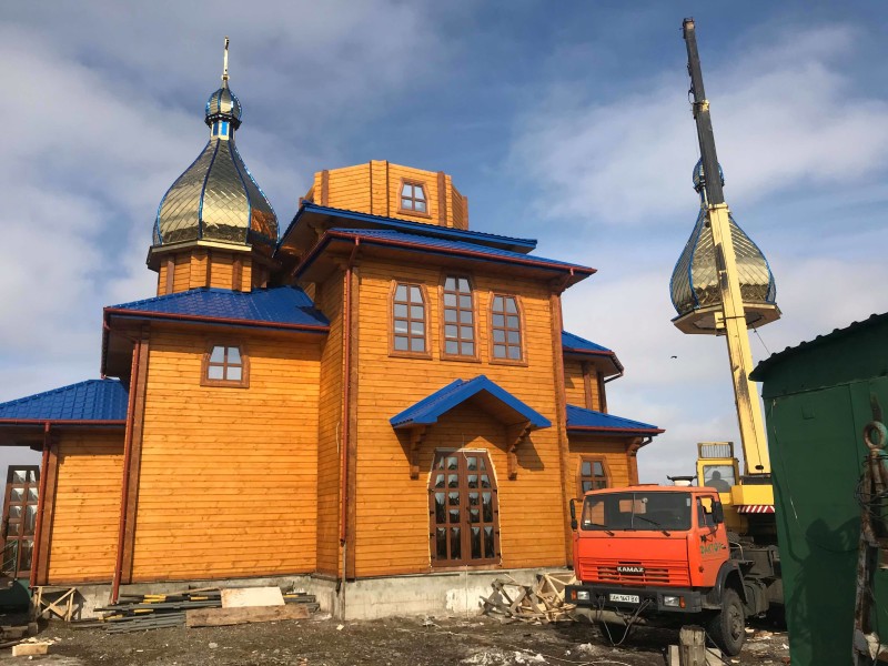 фото прес-служби Луцької міськради: над церквою в м. Волновасі монтують куполи.