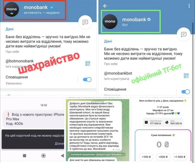 У телеграмі невідомі представилися операторами МоноБанку та попросили надати більше інформації про збір, оскільки побачили велику кількість переказів на картку.