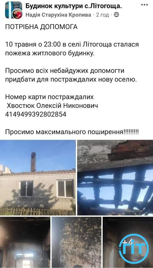 Вночі 10 травня сім’ю Хвостюків спіткало горе – згорів будинок. Односельці закликають громаду відгукнутися та зібрати необхідну суму для купівлі нового житла.