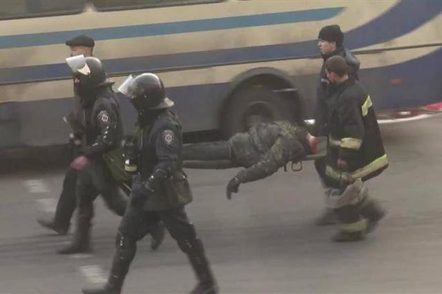 «Тепер-от дивлюся на фото й розумію, звідки взявся «обезголовлений майданівець». Не пам’ятаю, як мені бинтували голову, але з лівого боку й на потилиці було багато крові. І бушлат завеликий. Думаю, коли еменесники з вевешниками несли мене вгору по Грушевського, він задерся на вуха. І пов’язка була вся у крові з лівого боку. А якби мене несли головою вперед, картинка була б абсолютно інша для вас у Раді. Це ж звідти знімали? Так от, якби головою вперед, то скривавленого бинта не було б видно. Певно, через такий ракурс і з’явилися чутки, що відрубали комусь у Маріїнському парку голову. На твоїх фото себе впізнаю. Тут бушлат мій і джинси теж мої. А ногами вперед несли, бо думали, що помер. Лише перед машиною лікар вирішив іще раз перевірити пульс. Це десь біля Кріпосного провулку було, якщо судити з відео прокуратури. І вже після цього мене розвернули головою вперед і повезли до лікарні швидкої допомоги».
