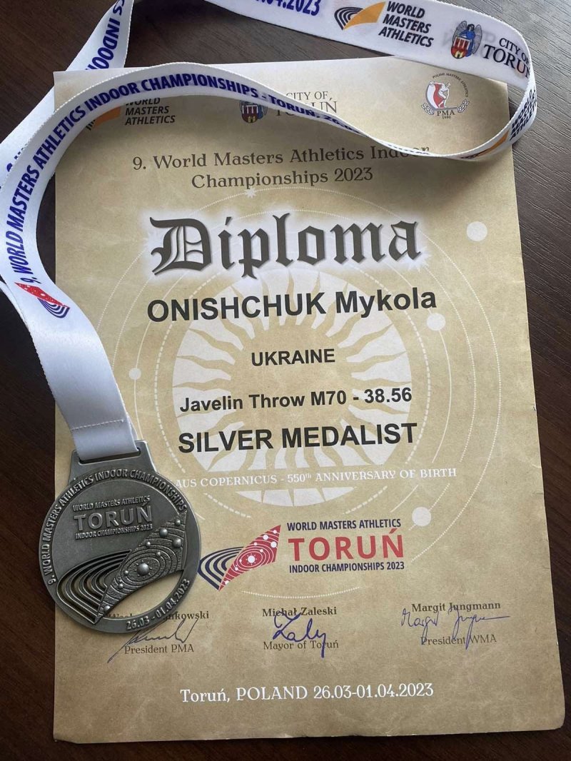 До слова, чотири року тому в Торуні на попередньому ЧС серед ветеранів Оніщук здобув в метанні спису бронзову нагороду у категорії М65.