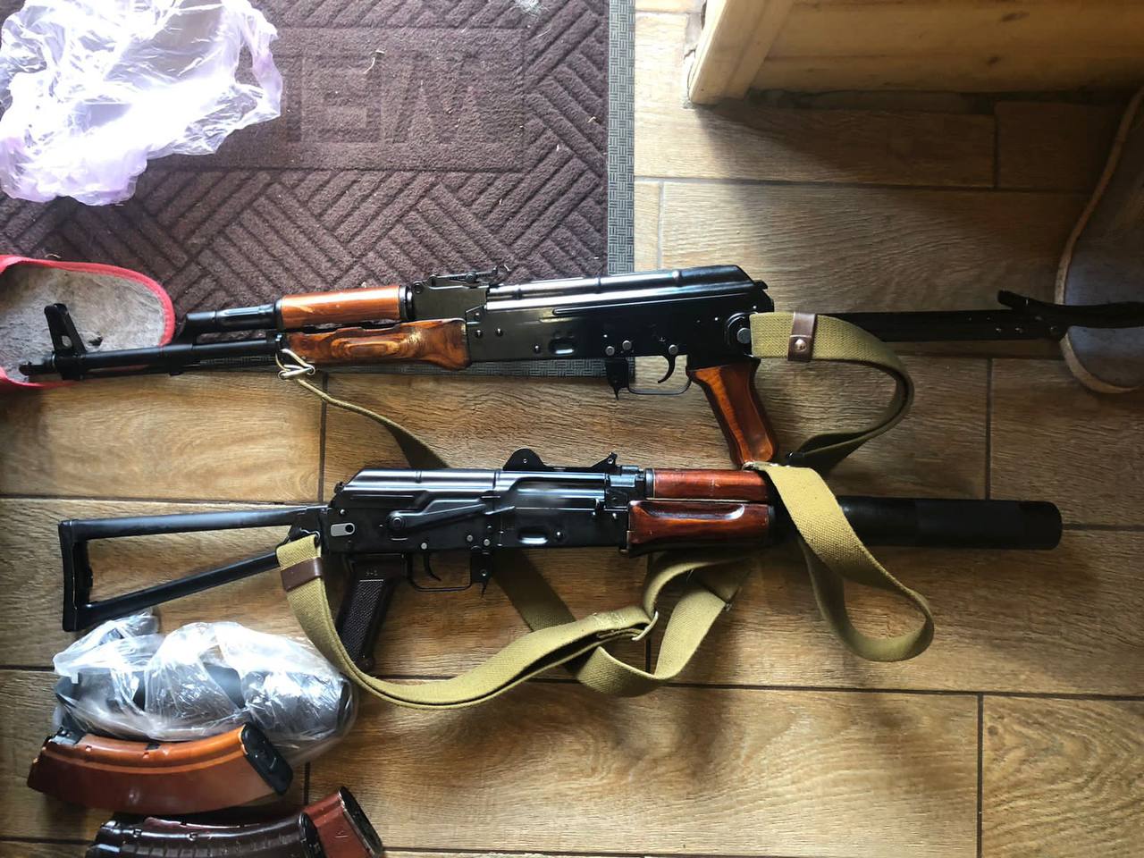 Під час проведення санкціонованих обшуків у зловмисників вилучили два автомати АК-74 та АКС-74, два карабіни, калібру 7,62 мм, димові гранати і шашки, майже 900 набоїв, гроші та автомобілі.